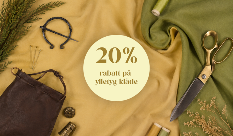 Sommaren närmar sig och med den årets alla medeltida marknader, lajv och historiska evenemang. Nu är det perfekta tillfället att färdigställa din dräkt – vi erbjuder 20% rabatt på utvalda ylletyger.