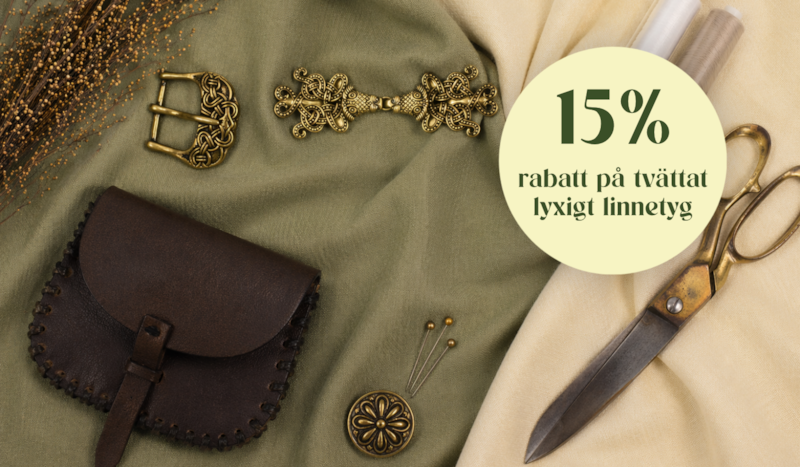 För dig som vill komplettera din dräkt finns även vårt tvättade lyxiga linnetyg – ett perfekt komplement till ullplaggen inför sommarens medeltida evenemang.