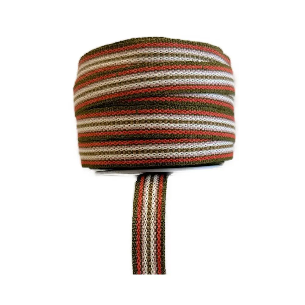 Dessa 15 mm breda bomullsband är vävda i Småland av ekologisk bomull, bestående av 85% bomull och 15% polyester. Med design inspirerad av traditionella nordiska folkdräkter, erbjuder banden en klassisk men uppdaterad stil.