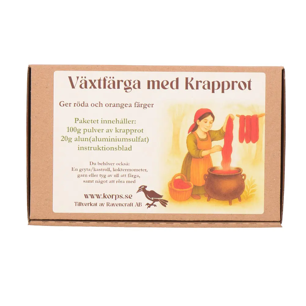 Skapa levande röda och varma orange nyanser med vårt Startkit för växtfärgning – Rött och orange med krapprot. Ett klassiskt och inspirerande kit för dig som vill arbeta med en av växtfärgningens mest älskade färgväxter.