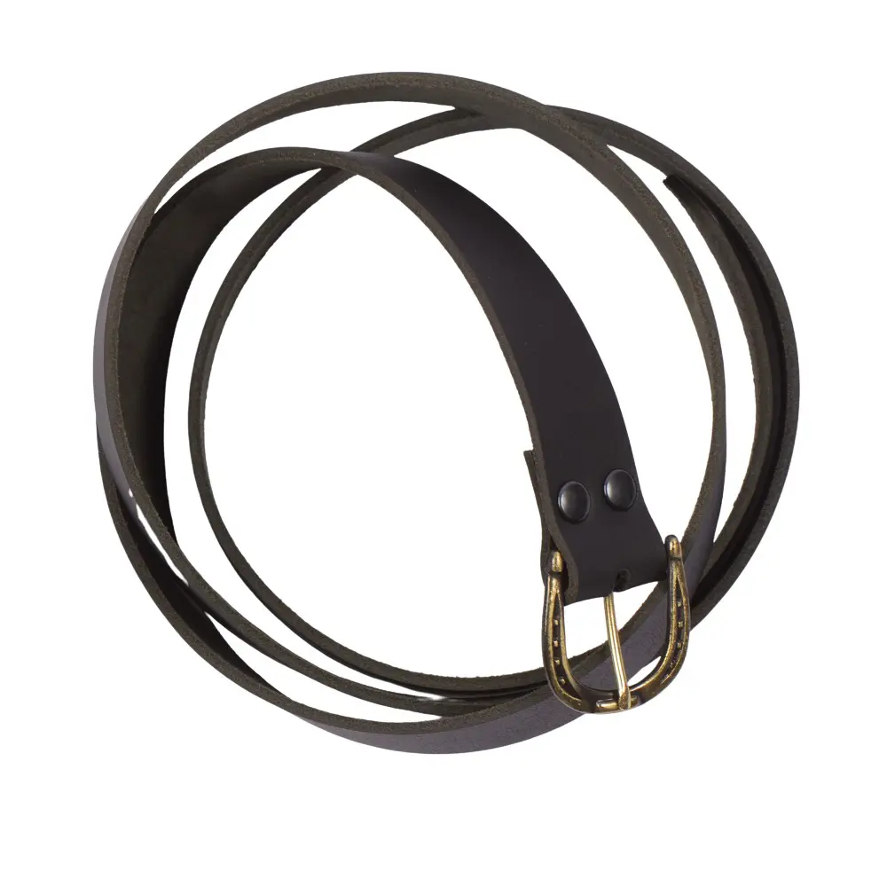 Handgjort Läderbälte med Hästskospänne i Mässing - Brun 25 mm brett
