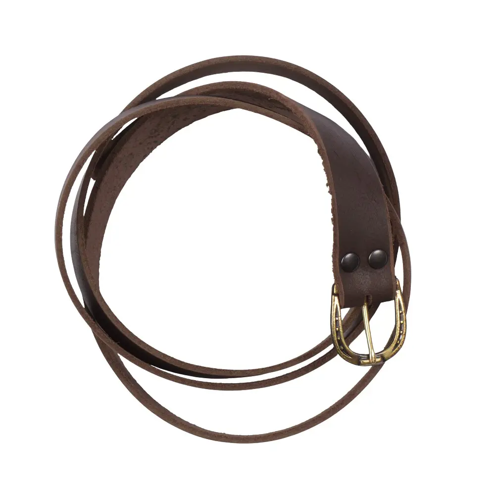 Handgjort Läderbälte med Hästskospänne i Mässing - Brun 25 mm brett