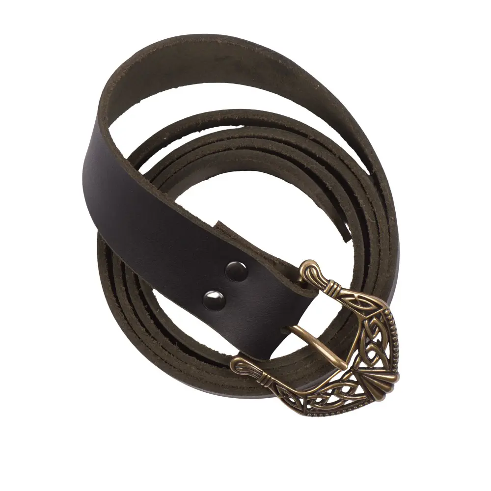 Ge dina kläder ett lyft med detta handgjorda läderbälte med keltiskt spänne - antik mässing, 35 mm. Ett bälte som kombinerar traditionellt hantverk med tidlös design och hög kvalitet.