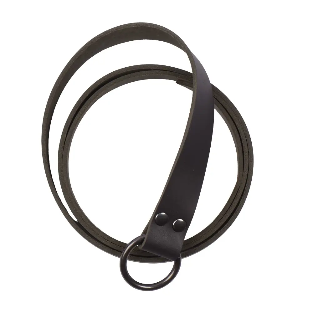 Upplev genuint hantverk och stilren funktionalitet med vårt handgjorda läderbälte med ring, skapat för dig som uppskattar både kvalitet och estetisk enkelhet. Bältet är tillverkat av slitstarkt, vegetabiliskt garvat läder och avslutas med en kraftig metallring som fungerar som spänne. Den nitade infästningen ger både stabilitet och ett robust uttryck, vilket gör detta bälte till ett pålitligt och stilfullt val för vardag, dräktbruk eller modern modeinspiration.