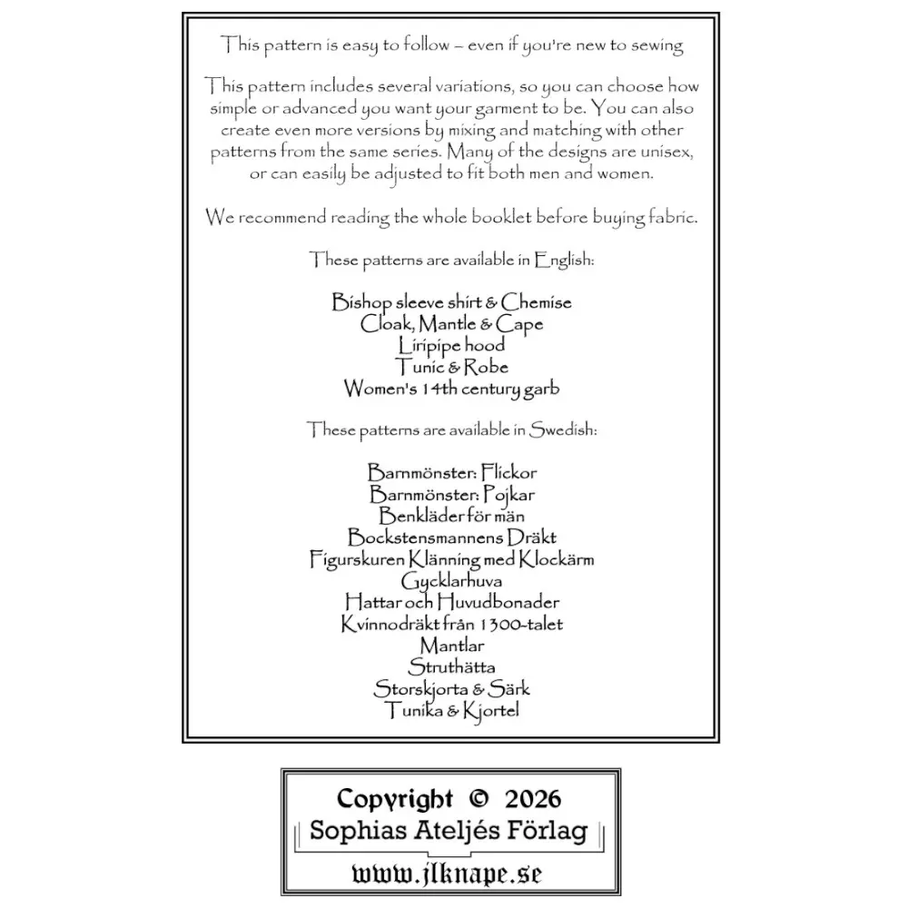 This pattern gives you the foundation to recreate garments rooted in historical tradition, while also offering flexibility to experiment with different styles, finishes, and personal touches.