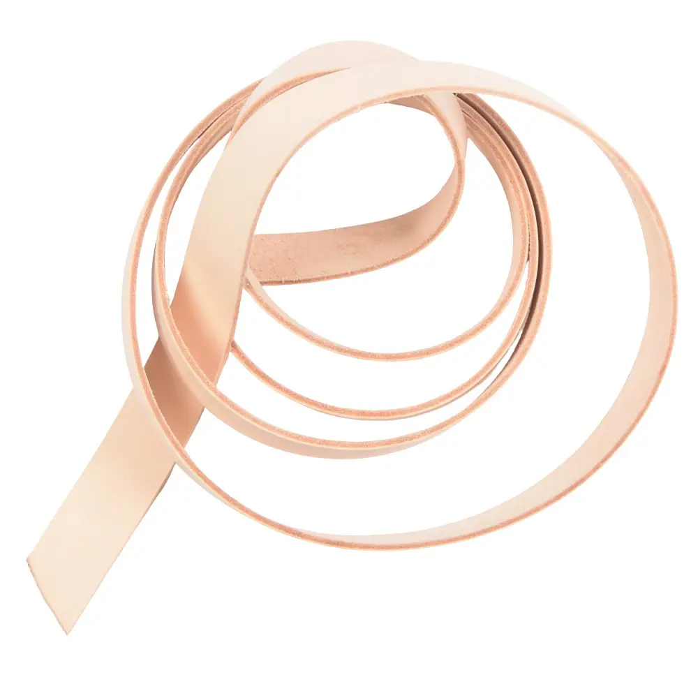 Upptäck en hållbar och mångsidig läderrem av hög kvalitet, perfekt för en mängd olika hantverksprojekt. Denna 24 mm breda läderrem i naturfärg är tillverkad av slitstarkt och formstabilt läder med en tjocklek på 2,2-2,4 mm. Detta ger en stabil och pålitlig rem med lång livslängd.