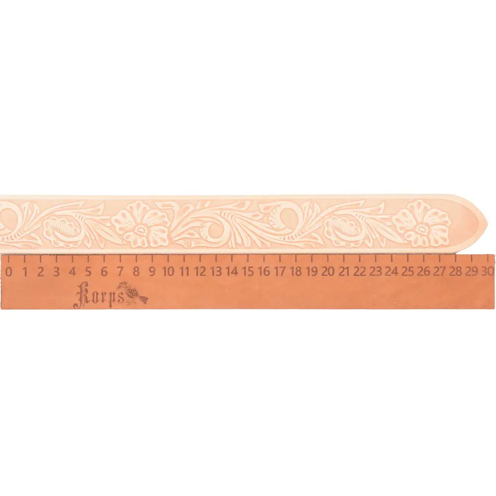 Våra präglade bältesämnen är tillverkade av vegetabiliskt garvat läder med vackert präglade mönster som löper längs hela bältet. Dessa läderbälten ger dig friheten att skapa anpassade accessoarer med en personlig touch och hög kvalitet.