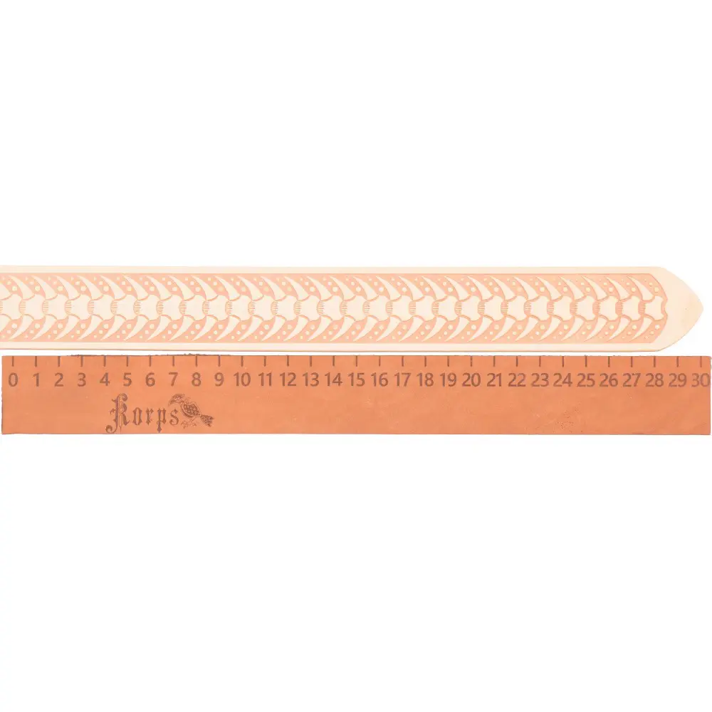 Dessa präglade bältesämnen är tillverkade av vegetabiliskt garvat läder med djupt ingraverade mönster längs hela längden. Perfekta för att skapa stilrena och personliga bälten, lämpliga för alla typer av outfit.