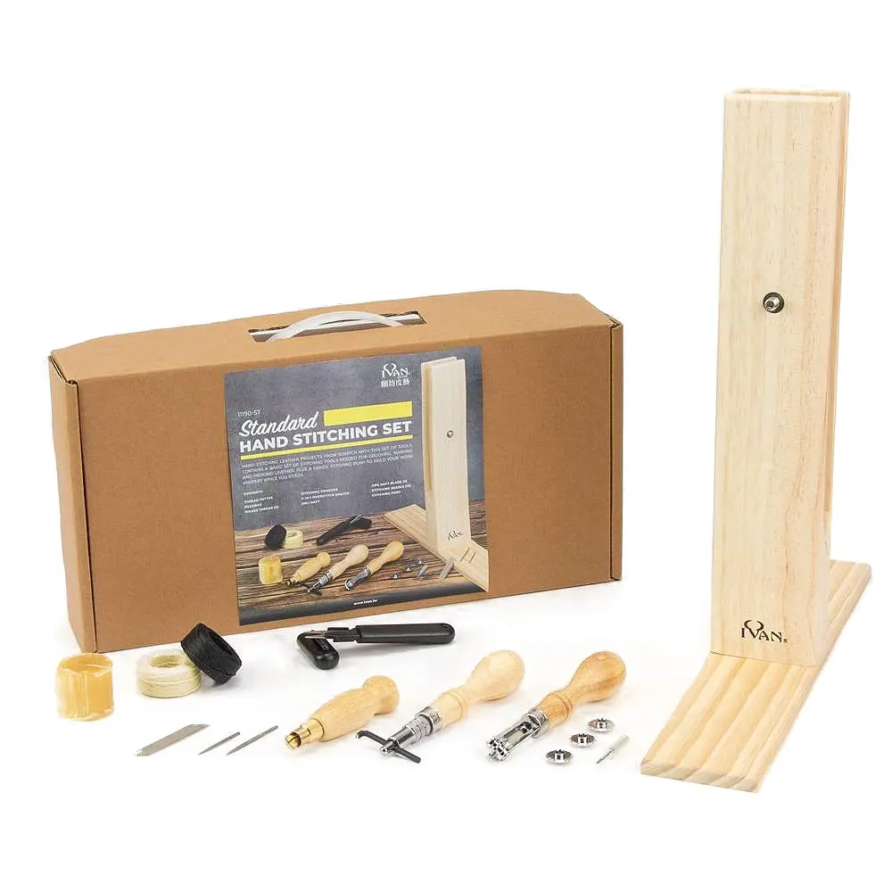 Detta färdiga set med läderverktyg och tillbehör passar dig som enkelt vill börja sy i läder och skinn vare sig du är nybörjare eller van hantverkare. Set standard innehåller de mest grundläggande verktygen och tillbehören. Setet innehåller också en smidig syklämma, i vilken du håller fast lädret medan du syr.