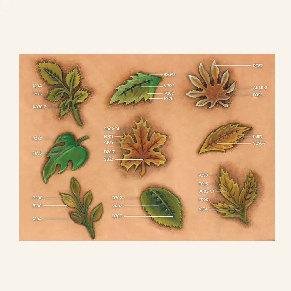 Denna återanvändbara ritmall med lövmönster är perfekt för att tillföra en organisk och dekorativ touch till dina läderprojekt. Den är idealisk för handväskor, plånböcker och andra accessoarer där ett naturinspirerat motiv kan förhöja designens estetiska.