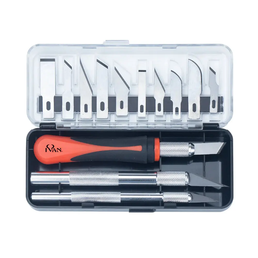 Detta 16-dels hobbyknivset är en mångsidig lösning för läderhantverkare. Setet innehåller allt som behövs för att utföra detaljarbeten och precisionsskärningar i läder.