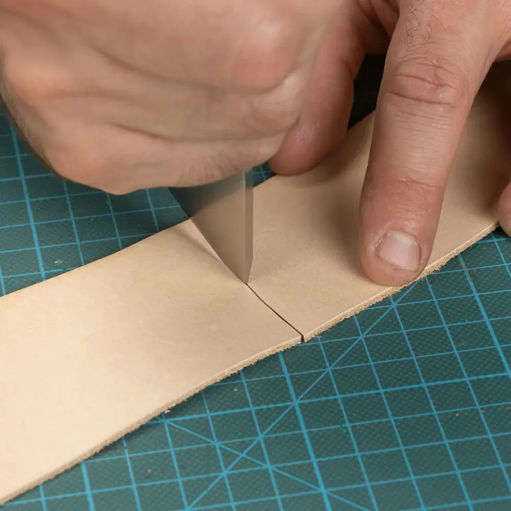 Kniven är konstruerad av material i hög kvalitet, inklusive rostfritt stål och bokträ. Rostfritt stål är känt för sin hållbarhet och motståndskraft mot rost, vilket gör kniven idealisk för användning inom läderarbete. Bokträ är ett robust och vackert träslag som ger handtaget en estetisk känsla och samtidigt bekväm i handen. Kniven har utformats med en skärningsvinkel som är helt rak och därmed perfekt för att uppnå precision vid skivning, trimning och skärning av läder. Detta gör det möjligt att skapa exakta och jämna snitt, även på tjocka lädermaterial. Eftersom knivens blad är tillverkat av rostfritt stål har det utmärkta rostskyddsegenskaper. Detta innebär att bladet inte lätt korroderar eller skadas av fukt, vilket är särskilt viktigt för att bibehålla knivens prestanda över tid. Bladet behåller sin skärpa över en lång tidsperiod med minimalt underhåll. Det gör att du inte behöver slipa kniven så ofta och kan fortsätta använda den för precisionsarbeten inom läderhantverk utan avbrott.