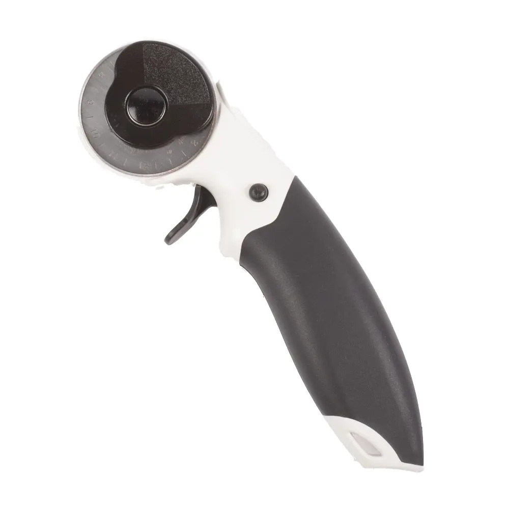 Med vår rullkniv kan du enkelt skära igenom läder, tyg och mer på nolltid. Ergonomiskt utformat handtag med mjuk kudde gör det bekvämt att använda i timmar utan att tröttna. Bladsäkerhetsskydd och handlås minimerar risken för olyckor och gör den enkel att använda. Den kompakta storleken gör den till ett måste för alla som arbetar med läder.