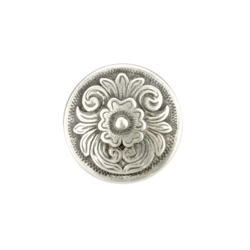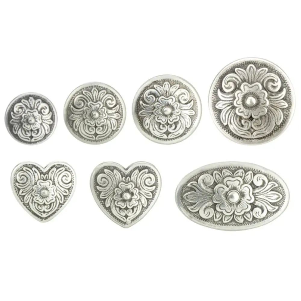 Den imponerande storleken på 32 mm för Concho Diablo i antik silver erbjuder en stark visuell effekt och är perfekt för större läderprojekt. Den kan med lätthet fungera som mittpunkt på väskor, jackor och bälten. Den antika silverfinishen tillför en rik och sofistikerad kvalitet, vilket gör den till en favorit bland hantverkare.