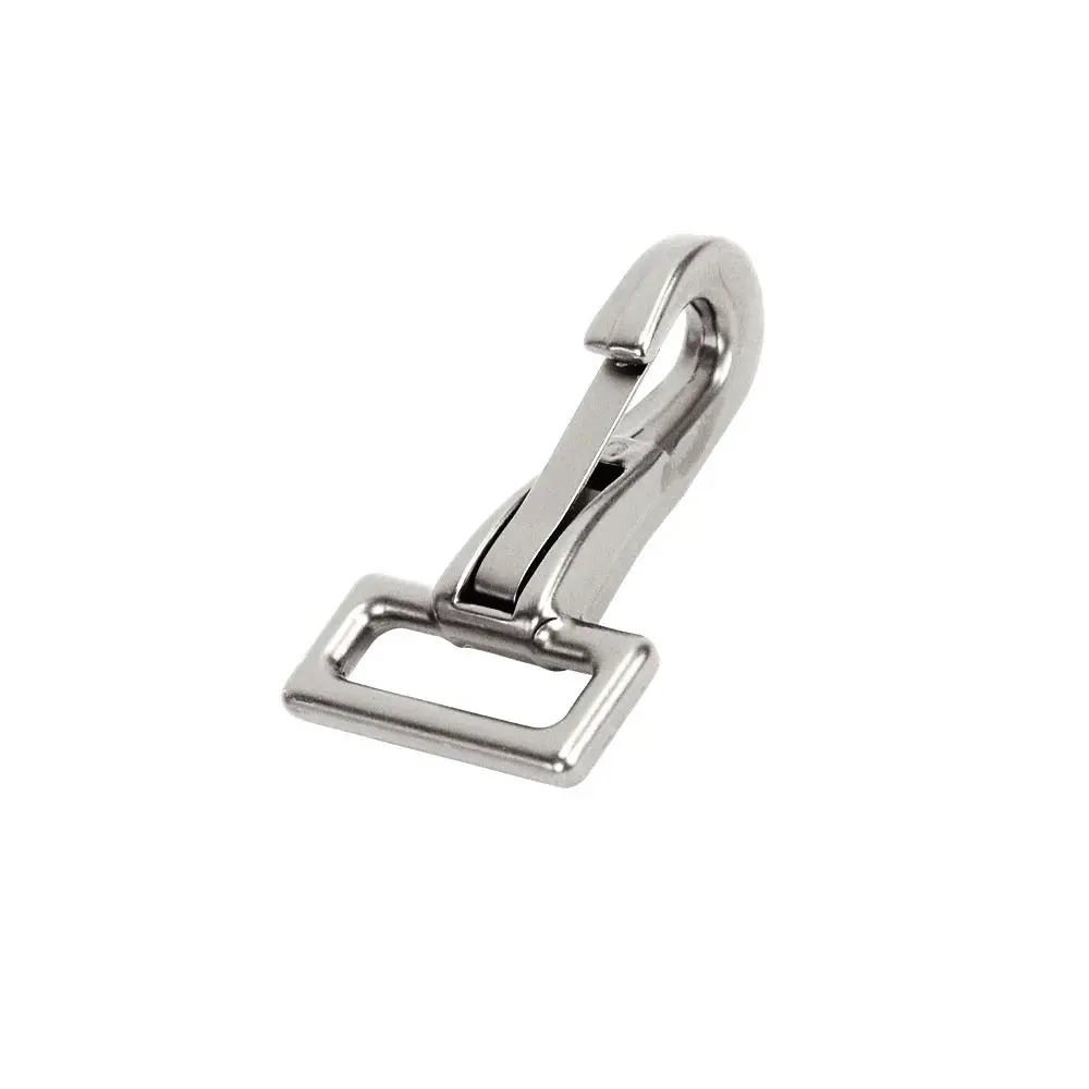 Denna silverfärgade karbinhake med remfäste är idealisk för att säkra remmar i väskor, bälten, nyckelringar och andra accessoarer där både stil och säkerhet är av betydelse. Anpassad för 19mm remmar, erbjuder den en både praktisk och elegant lösning för fastsättning.
