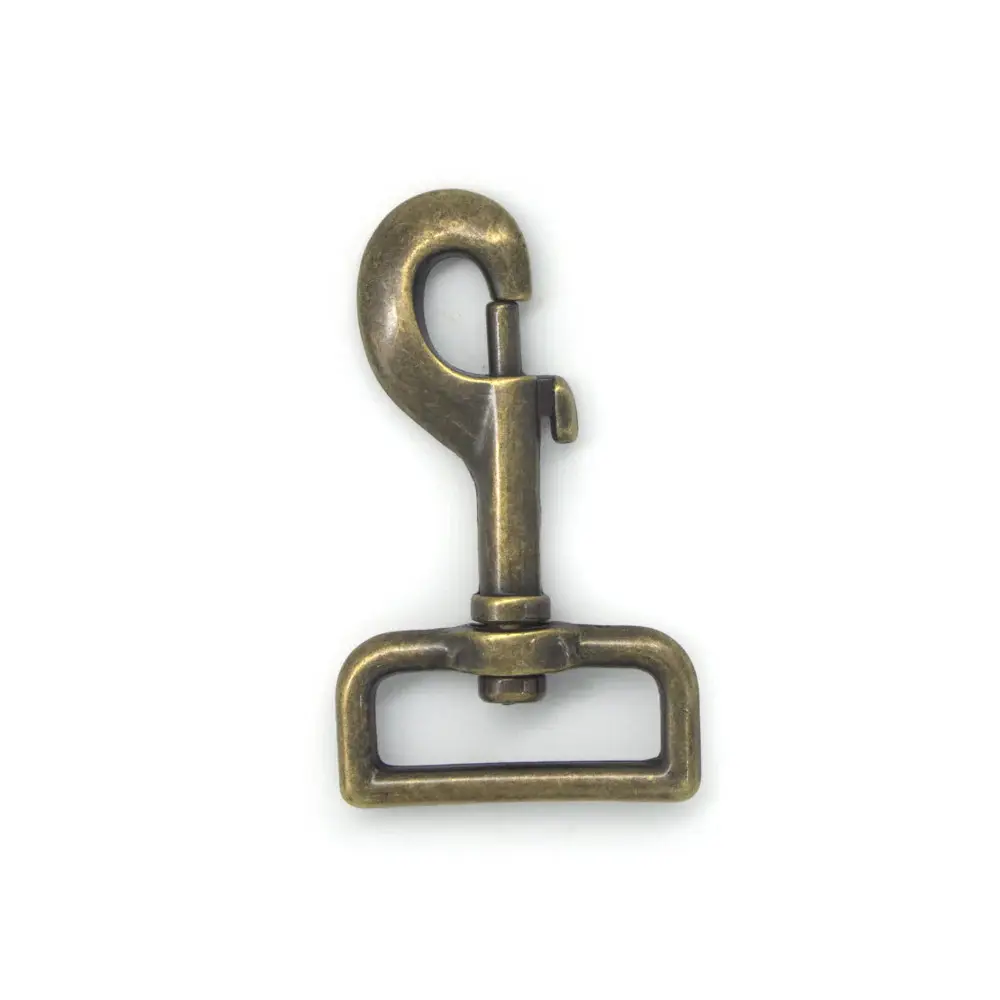 Denna karbinhake i antik mässing är perfekt för att säkert och stilfullt fästa 38mm remmar på stora väskor, utrustningsdelar och andra accessoarer där estetik och funktionalitet är av stor vikt. Med en swivel-funktion förhindras remmen från att tvista sig, medan snäpplåset erbjuder en snabb och säker låsning.