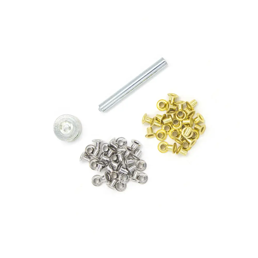Detta kompletta öljettset är perfekt för att installera öljetter med en diameter på 4.5mm i både läder och tyg. Setet är utformat för att ge en hållbar lösning för att förstärka hål och samtidigt fungera som ett dekorativt inslag på produkter som väskor, bälten och klädesplagg.