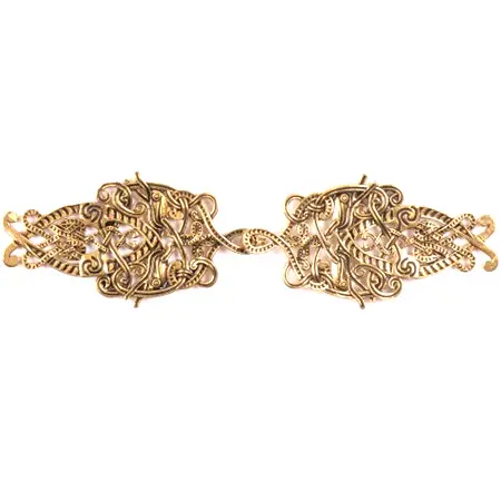 Det vikingatida metallspännet Hugin är en dekorativ och praktisk lösning för att fästa klädesplagg och accessoarer. Tillverkat av nickelsäker mässing, består detta spänne av en hyska och en hake, och säljs som ett komplett par.