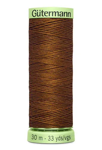 Vår rödbruna knapphålstråd är en extra stark och grov tråd som passar utmärkt för både maskin- och handsömnad. Den varma och jordnära färgen ger en elegant och sofistikerad finish på grova stickningar och är optimal när den används med precision på symaskin.