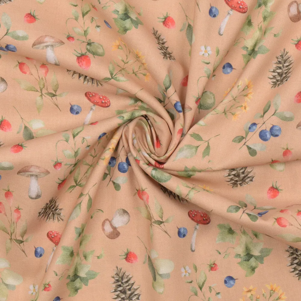Mönstrat bomullstyg i 100 % bomull är ett mångsidigt och lättarbetat tyg som passar perfekt för både sömnad, inredning och kreativa textilprojekt. Med en bredd på 148 cm och en vikt på 140 g/m² får du ett tyg som är lagom stabilt samtidigt som det är mjukt och följsamt, vilket gör det enkelt att klippa, sy och forma även för nybörjare.