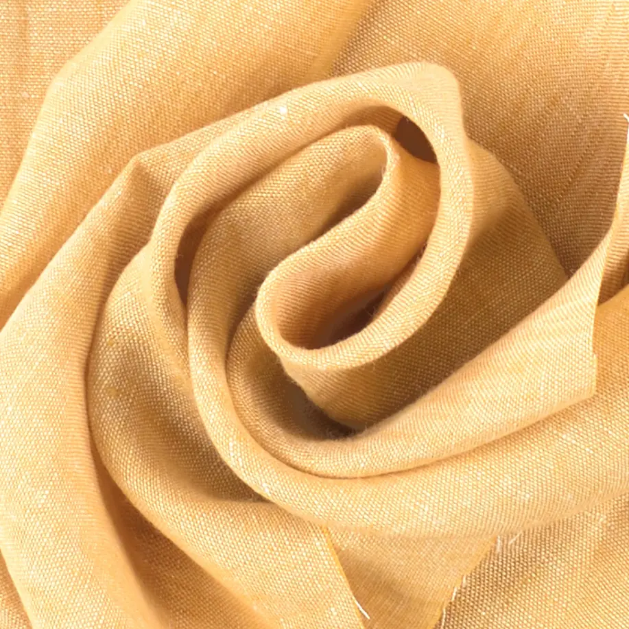 Extra tunt och mjukt förtvättat gult melerat linnetyg till kläder för hela familjen med en mycket lätt och skön känsla mot huden. Detta gula tunna lintyg blir vackert till alla sorters kläder som klänning, blus eller skjorta och tunna linnebyxor.