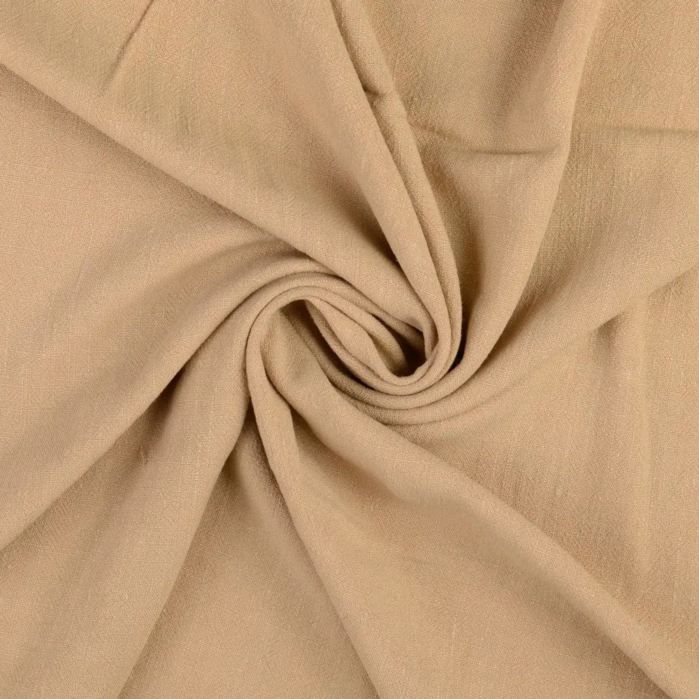 Ett mjukt och följsamt viskos/linnetyg som kombinerar viskosens vackra fall med linnets naturliga struktur. Resultatet är ett luftigt och behagligt tyg som känns skönt mot huden och ger plaggen ett elegant, avslappnat uttryck.