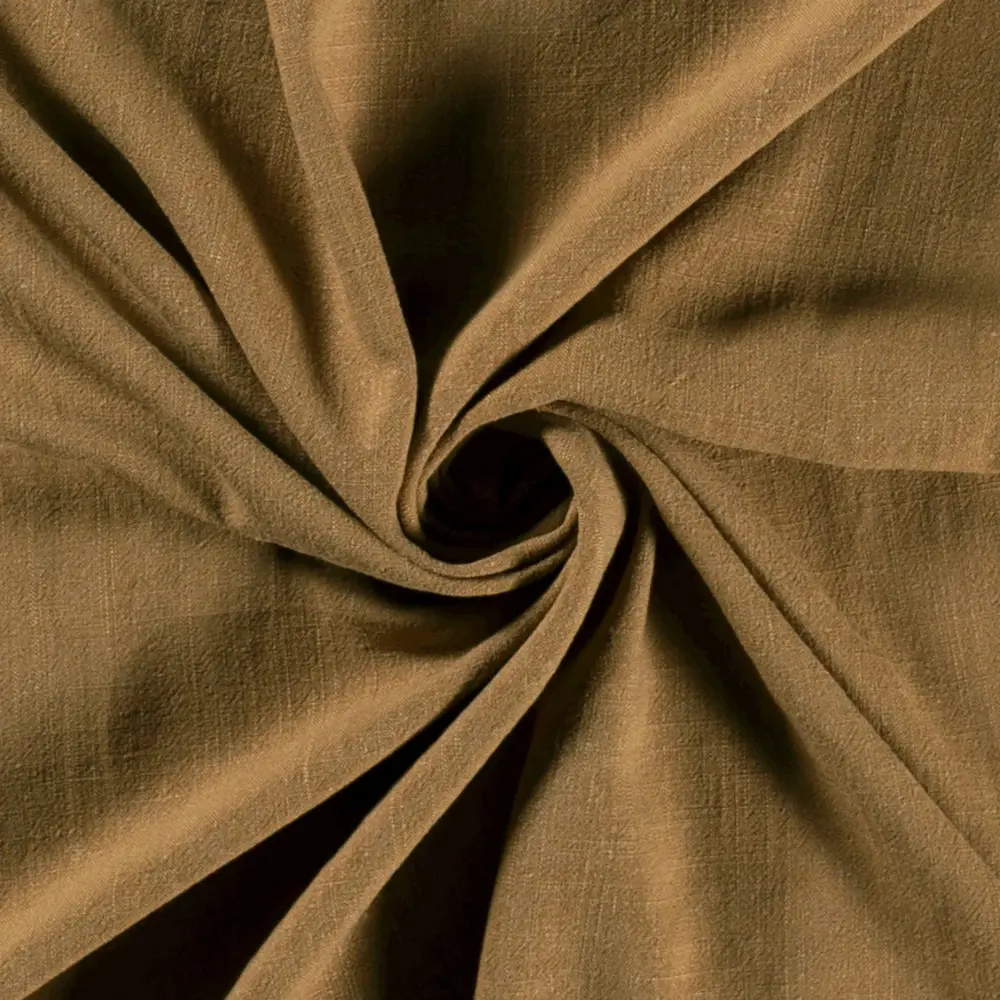 Ett mjukt och följsamt viskos/linnetyg som kombinerar viskosens vackra fall med linnets naturliga struktur. Resultatet är ett luftigt och behagligt tyg som känns skönt mot huden och ger plaggen ett elegant, avslappnat uttryck.
