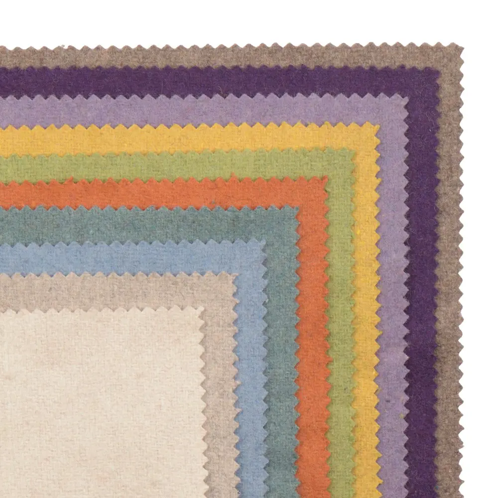 Dessa färdigklippta bitar är tillverkade av Korps egna tunna vadmal, ett tyg av återvunnen ullfiber. Varje bit mäter 20x20 cm och erbjuder ett miljövänligt alternativ för dina kreativa projekt. De levereras i blandade färger som har inspirerats av en blomsteräng.