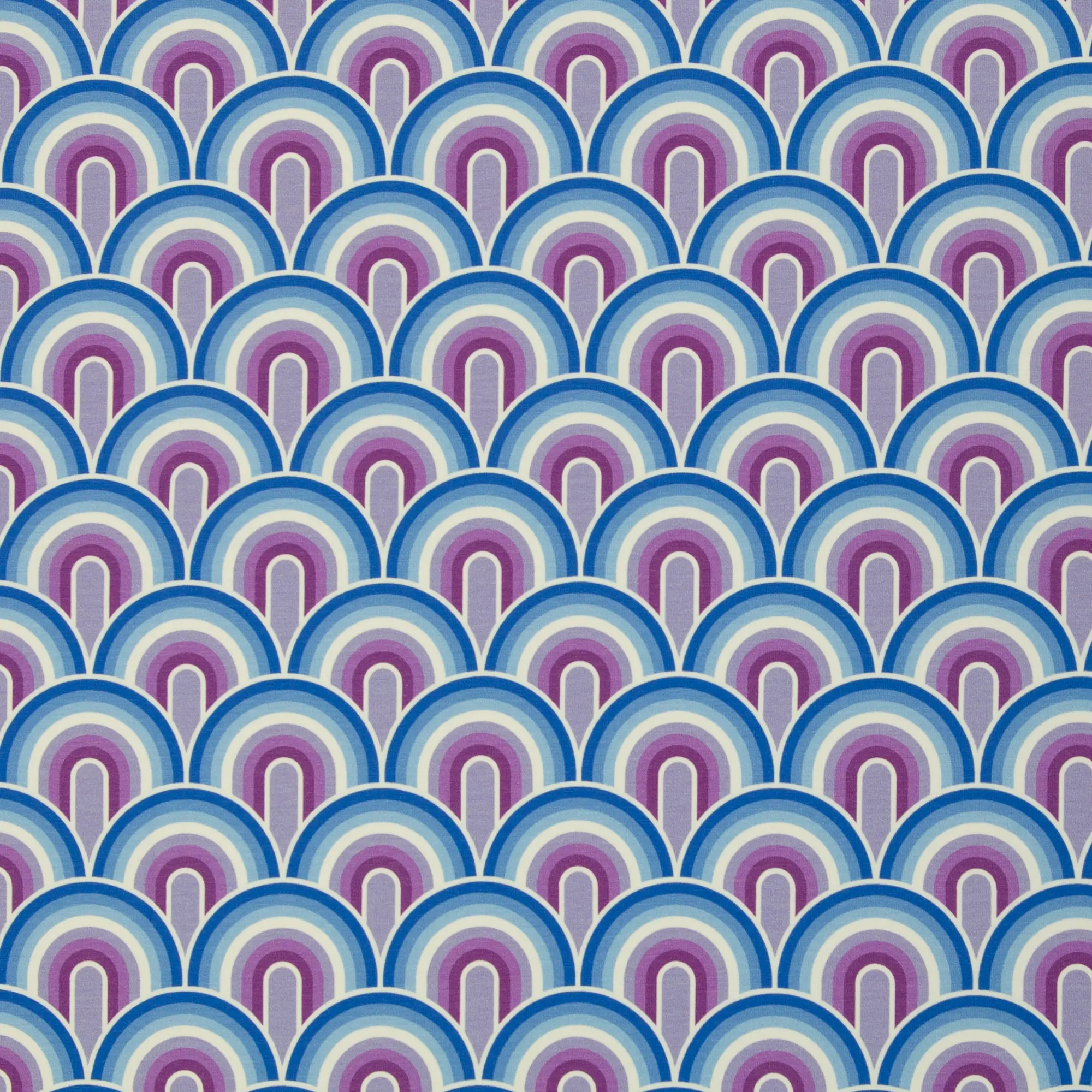 Denna bomullstrikå i en vacker ljuslila och flerfärgad kombination är ett tunt, mjukt och mycket följsamt tyg. Det är perfekt för att skapa bekväma och färgglada kläder för både vuxna och barn. Tyget erbjuder komfort och en smidig passform, vilket gör det idealiskt för dagligt bruk.