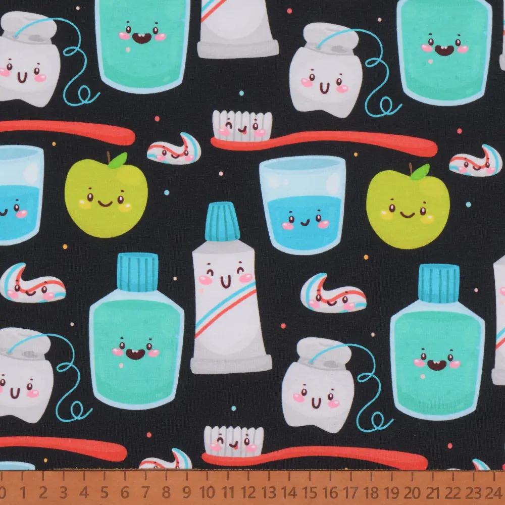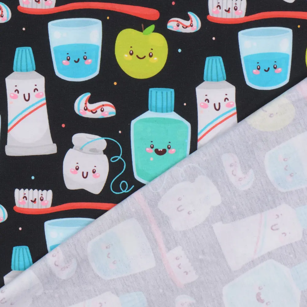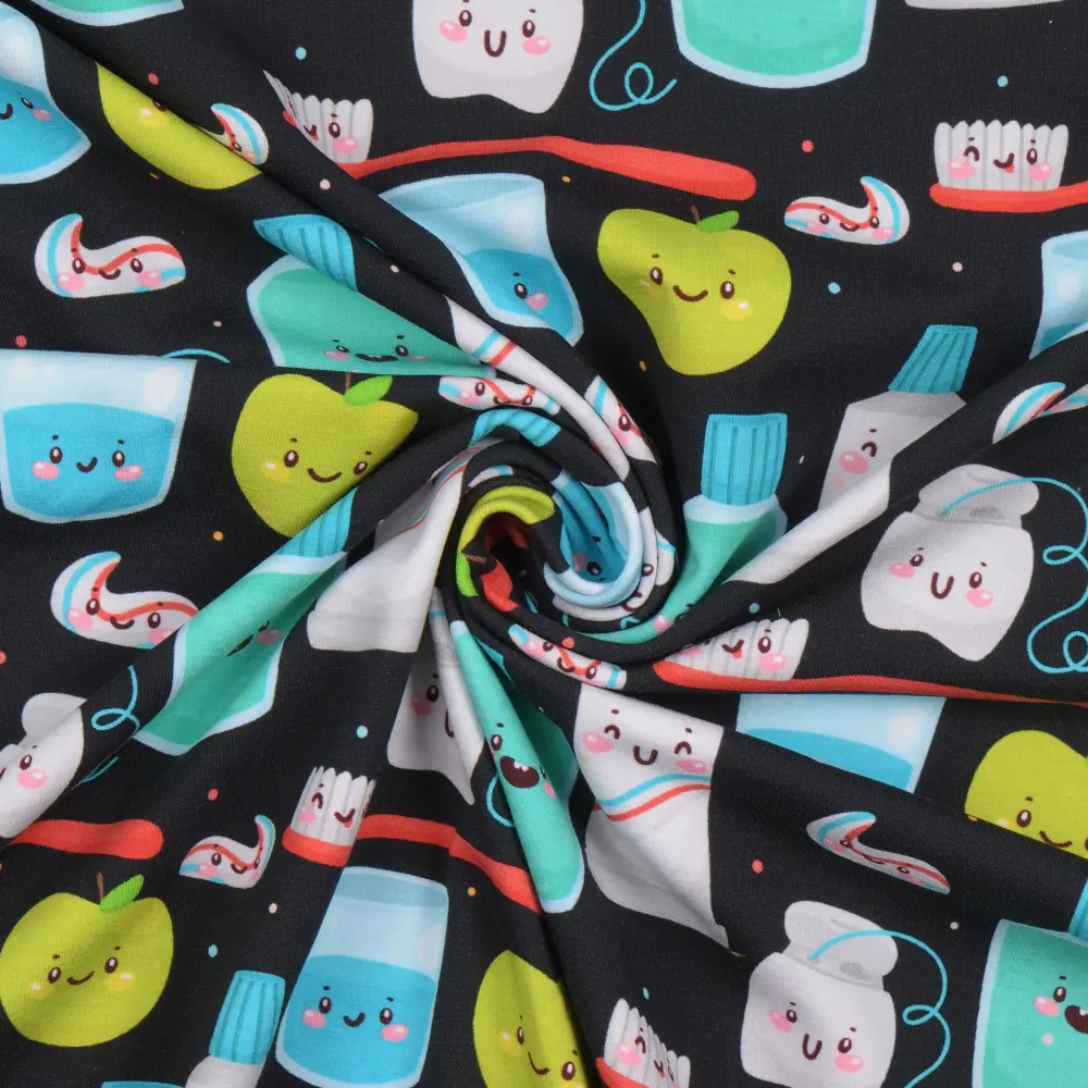 Skapa mjuka och bekväma plagg med vår mönstrade trikå av hög kvalitet! Med en generös bredd på 150 cm och en vikt på 200 g/m² är tyget perfekt för både kläder och accessoarer, från t-shirts och klänningar till barnplagg och bekväma loungeplagg.