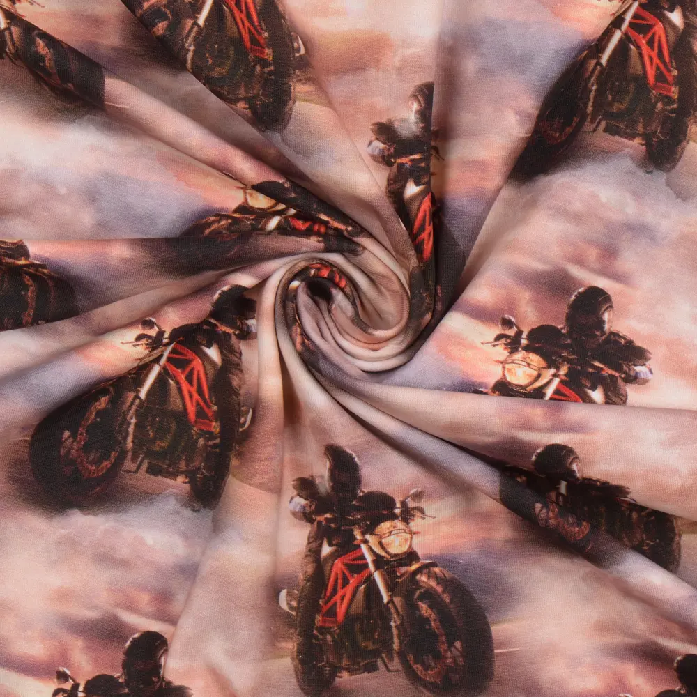 Skapa mjuka och bekväma plagg med vår mönstrade trikå av hög kvalitet! Med en generös bredd på 150 cm och en vikt på 200 g/m² är tyget perfekt för både kläder och accessoarer, från t-shirts och klänningar till barnplagg och bekväma loungeplagg.