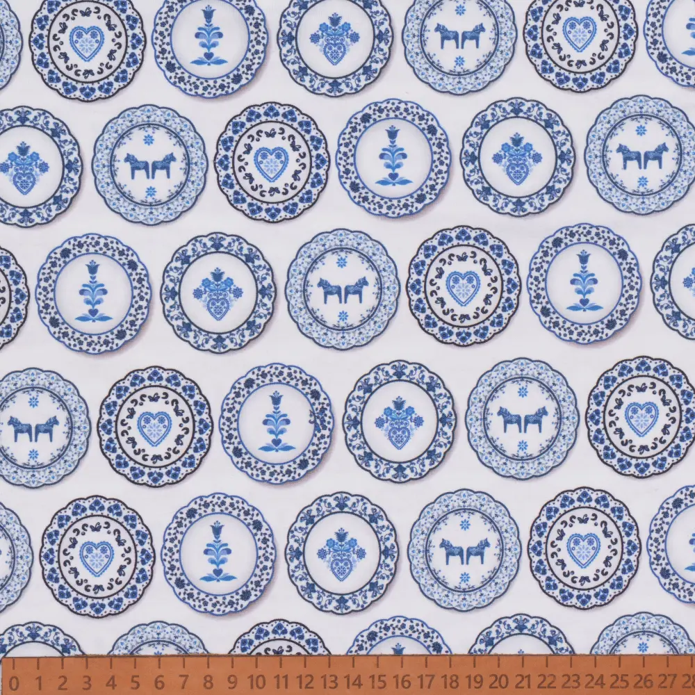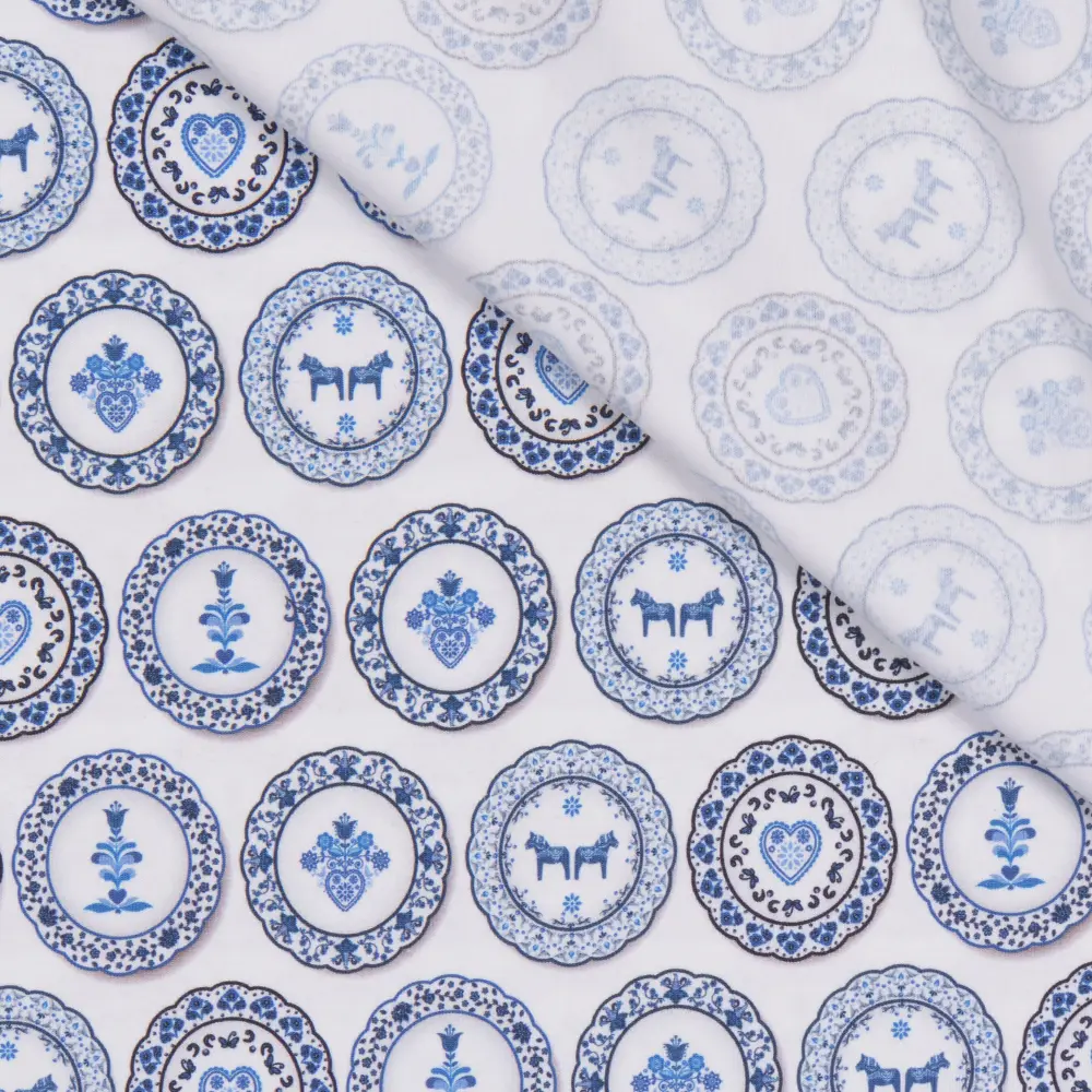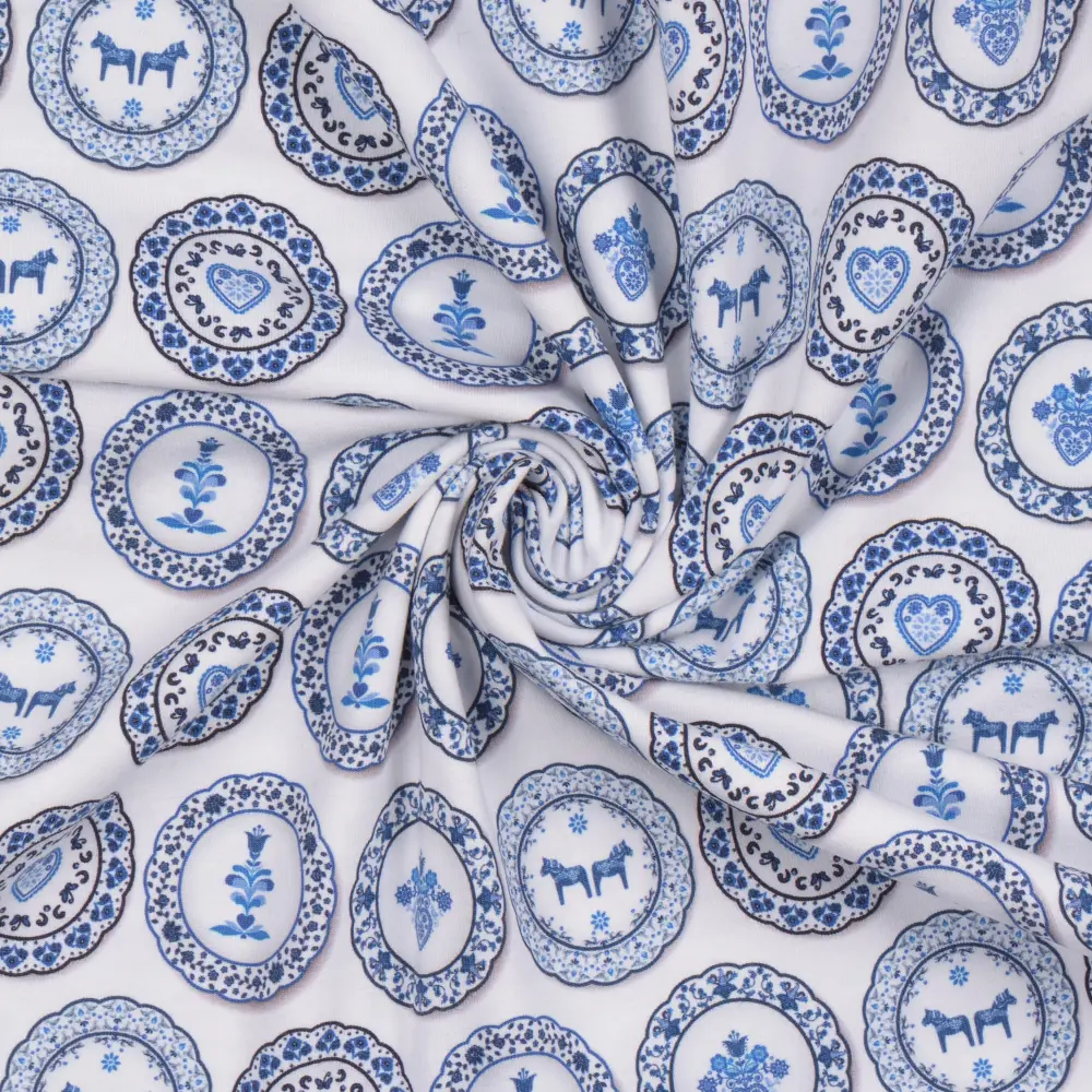 Skapa mjuka och bekväma plagg med vår mönstrade trikå av hög kvalitet! Med en generös bredd på 150 cm och en vikt på 200 g/m² är tyget perfekt för både kläder och accessoarer, från t-shirts och klänningar till barnplagg och bekväma loungeplagg.