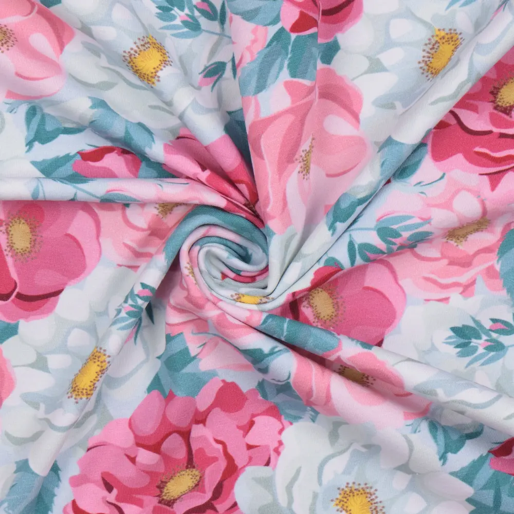 Skapa mjuka och bekväma plagg med vår mönstrade trikå av hög kvalitet! Med en generös bredd på 150 cm och en vikt på 200 g/m² är tyget perfekt för både kläder och accessoarer, från t-shirts och klänningar till barnplagg och bekväma loungeplagg.