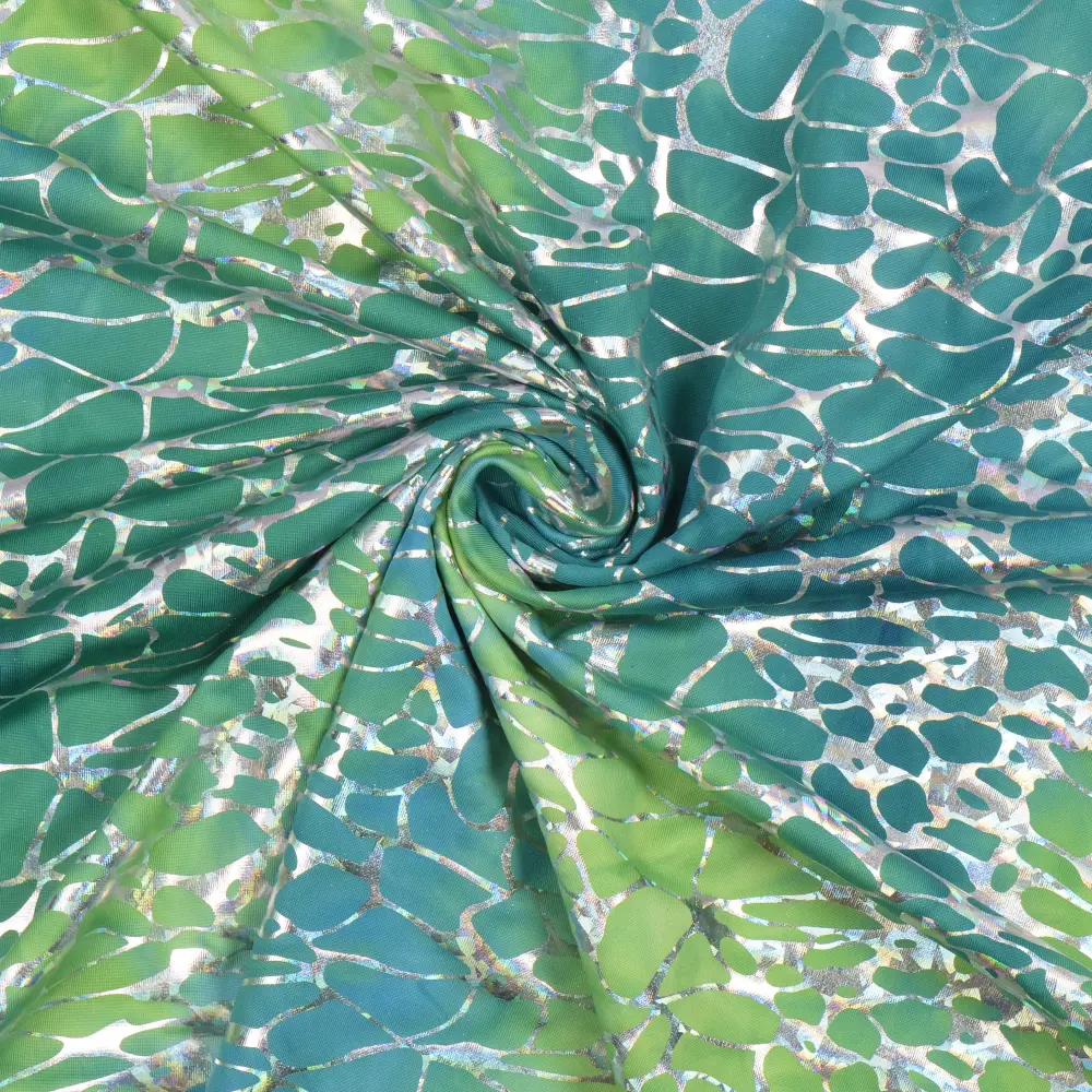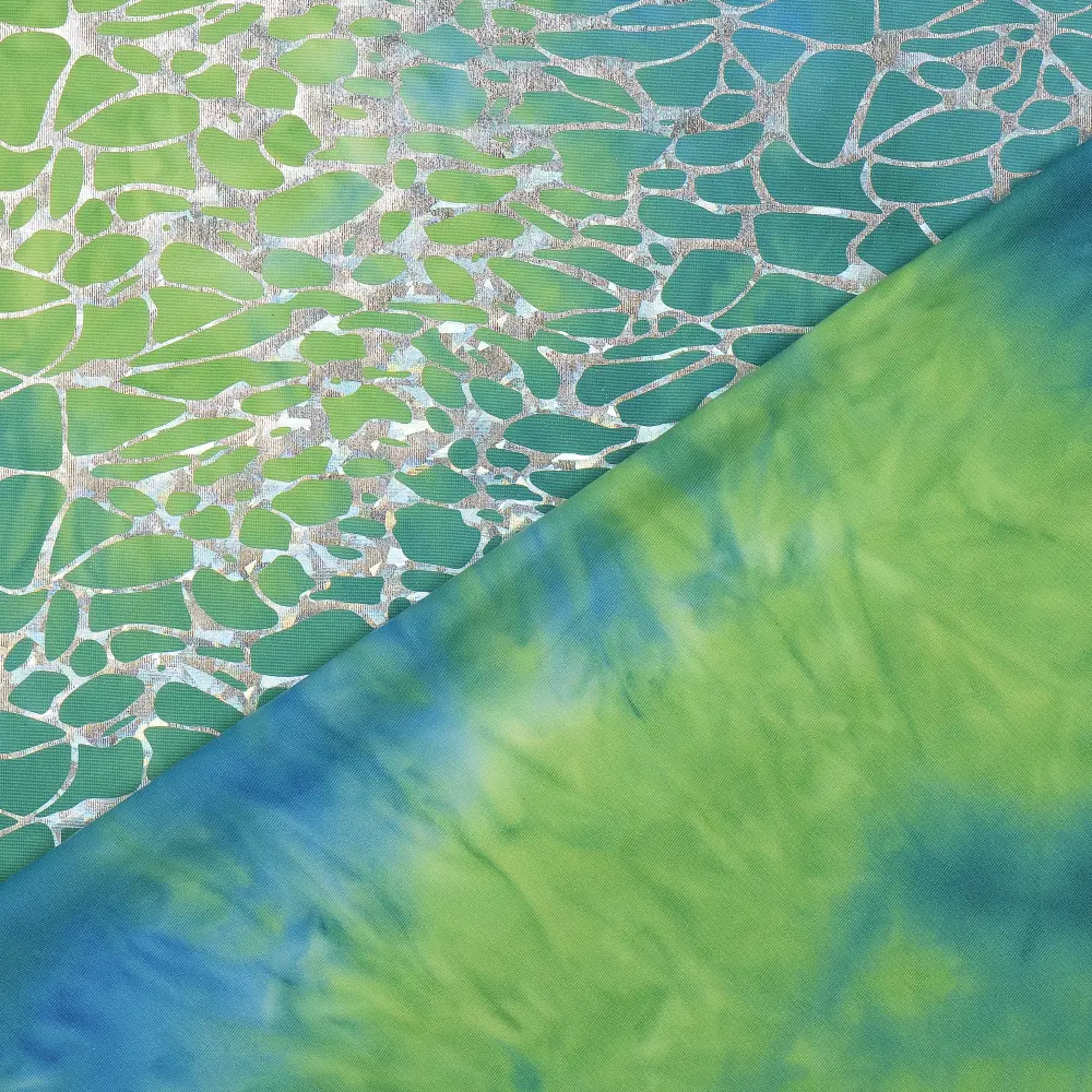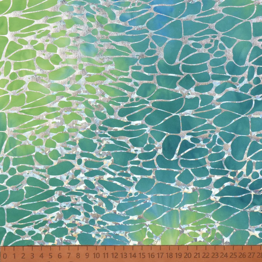 Detta folierade trikåtyg är ett perfekt val när du vill skapa plagg som verkligen sticker ut. Den blanka foliefinishen ger en exklusiv och trendig look, samtidigt som tyget behåller sin mjuka och elastiska kvalitet. Med 92 % polyester och 8 % elastan får du ett slitstarkt tyg med god stretch och följsam passform.Tyget har en bredd på 150 cm och en vikt på ca 200 g/kvm, vilket gör det lagom kraftigt för plagg som ska sitta snyggt mot kroppen utan att kännas tunga.