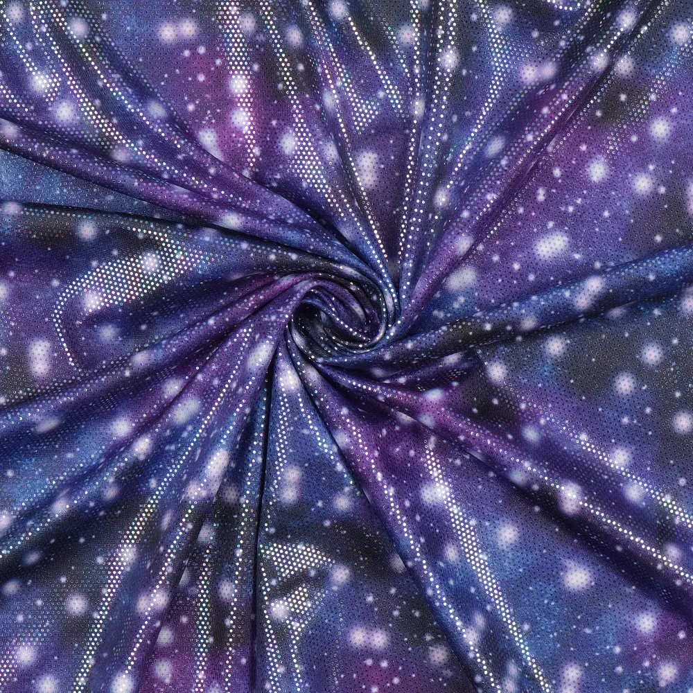 Passar utmärkt till: Klänningar, toppar, leggings, scen- och festplagg, barn- och danskläder samt detaljer som kräver lite extra wow-känsla.Ett modernt trikåtyg som kombinerar komfort och effektfull design – perfekt för kreativa sömnadsprojekt där glans och stretch står i fokus.