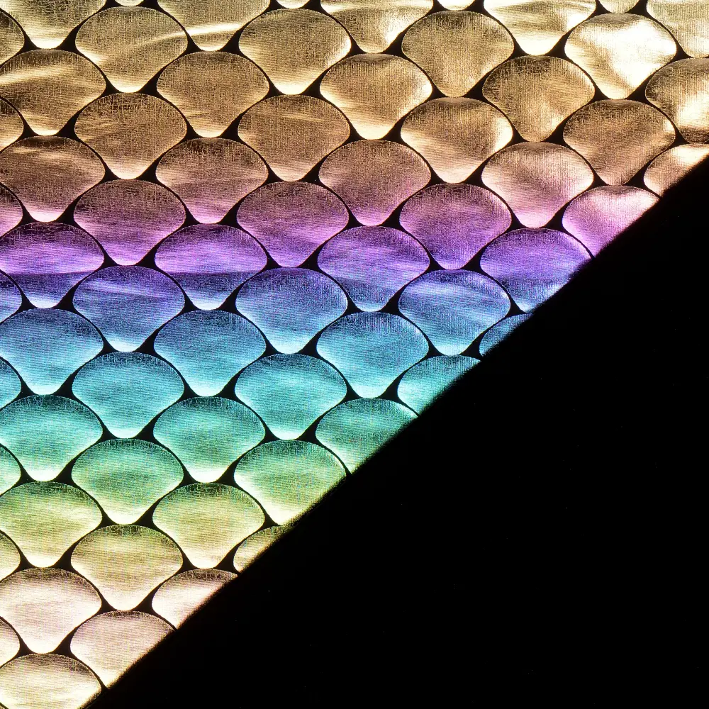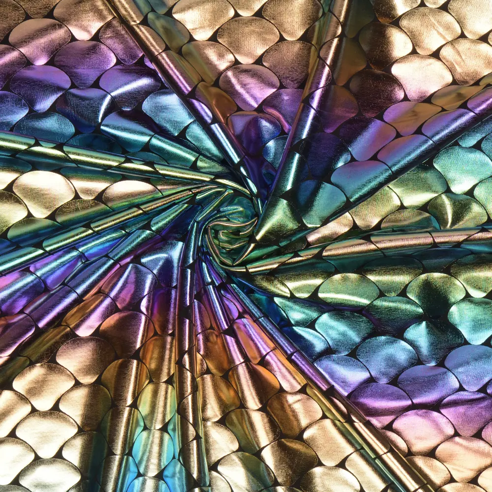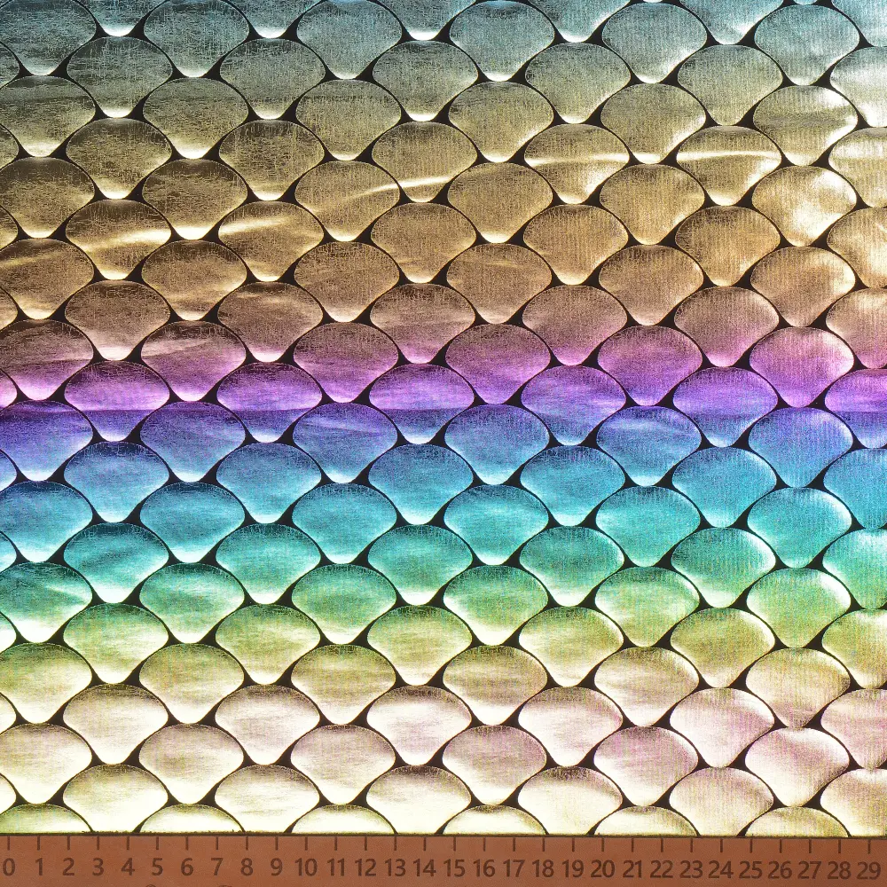 Passar utmärkt till: Klänningar, toppar, leggings, scen- och festplagg, barn- och danskläder samt detaljer som kräver lite extra wow-känsla.Ett modernt trikåtyg som kombinerar komfort och effektfull design – perfekt för kreativa sömnadsprojekt där glans och stretch står i fokus.
