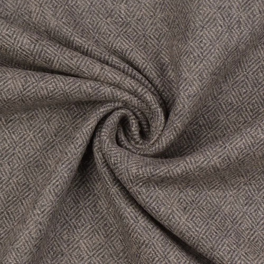 Återvunnet ylletyg vävt i vackert mönstrad diamantkypert. Detta är ett valkat ylletyg med vackert fall som passar lika bra till sömnad av kläder och ytterkläder som inredningsdetaljer. Med två meter av mönstrat ylletyg som tvättas i ullprogram får du en mjuk och gosig pläd som passar både i soffan och i det medeltida eller vikingatida tältlägret. Enligt indiska stadgar räknas dessa tyger som handvävda då tillverkningen sker med en mekanisk vävstol som styrs manuellt för hand. Korps återvunna mönstrade ylletyger tillverkas i Indien och vår personal på plats i landet kontrollerar att väverierna följer god etik och vår strävan efter miljövänlighet. Det förekommer inget barnarbete och vi eftersträvar alltid bästa möjliga arbetsförhållanden.