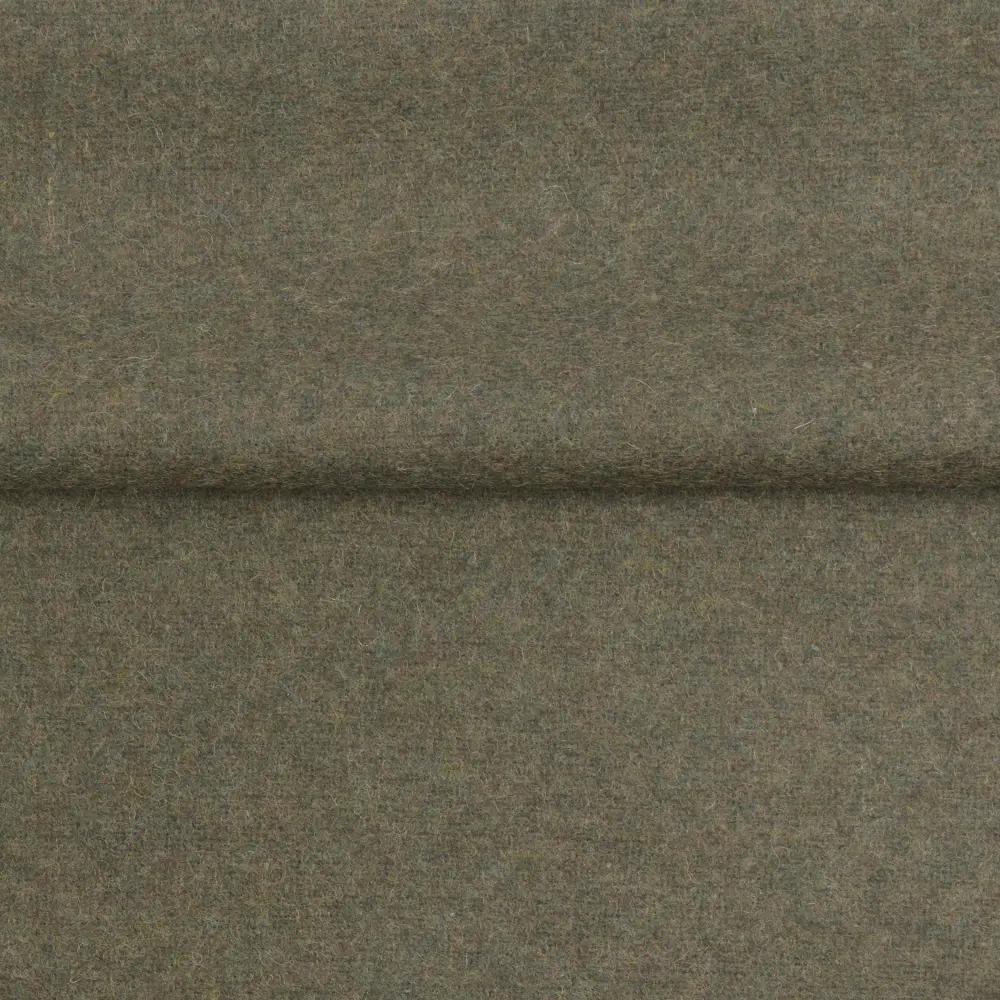 Detta mörk olivfärgade ylletyg är tillverkat av 100% återvunnen ullfiber, vilket gör det till ett miljövänligt och ekonomiskt alternativ för en mängd kreativa projekt. Tyget är mjukt, följsamt och måttligt tjockt med en väl valkad yta som ger en varm och mysig känsla.