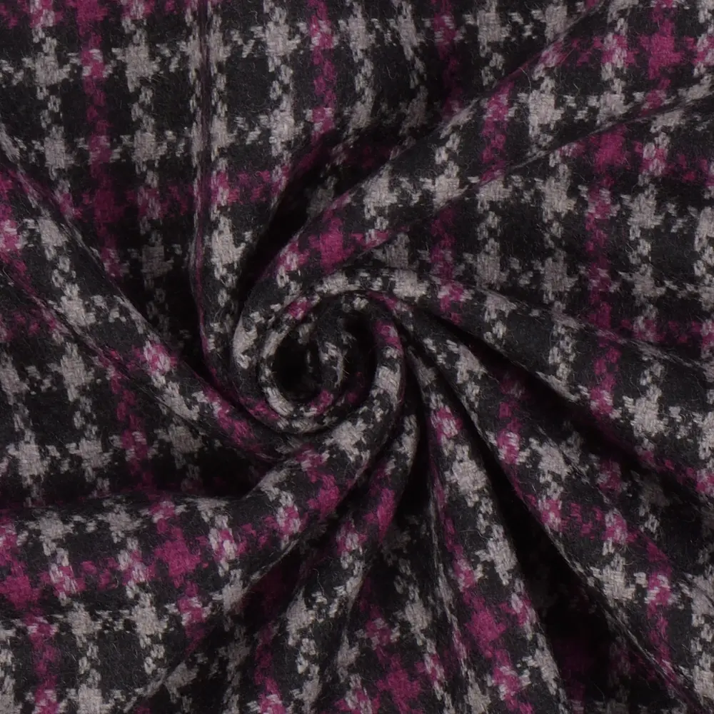 Ett mjukt och stadigt men ändå tunt mönstrat ylletyg av återvunnen ull som passar till kläder och ytterkläder. Dessa ylletyger vävs i en blandning av 60% återvunnen ull och 40% nylon för att ge ett starkt och slittåligt tyg. Med fodring av till exempel linnetyg, viskosfoder eller brokad är Korps rutiga ylletyger lika snygga till kappa eller jacka, utan fodring fungerar tyget också till överskjorta eller byxor. Tyget går bra att tvätta i 30oC på tvättmaskinens ullprogram. Vid torktumling blir tyget mjukare.
