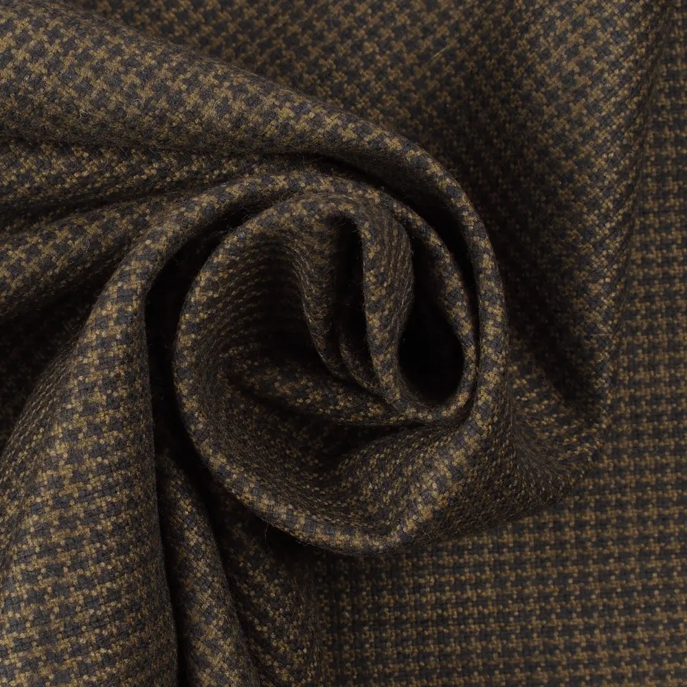 Detta tyg är en fantastisk blandning av 60% återvunnen ull och 40% nylon, vilket ger det både styrka och slitstyrka. Tyget är mönstrat och har en bredd på cirka 140 cm med en vikt på cirka 280 - 320 g/m², vilket gör det idealiskt för kläder och ytterkläder.